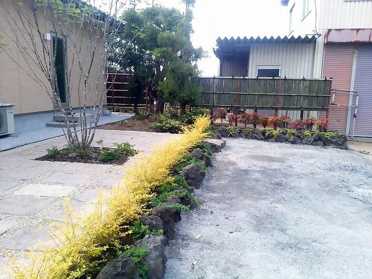 例えば、敷石を利用して防草対策を行った作庭では、このような事例があります。